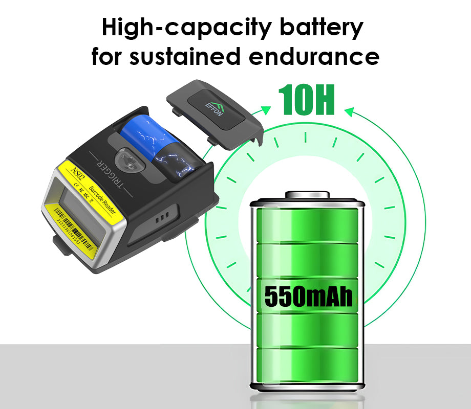 It can read 1D and 2D barcodes, including damaged, wrinkled, or reflective labels. It also supports scanning barcodes displayed on smartphone and tablet screens.